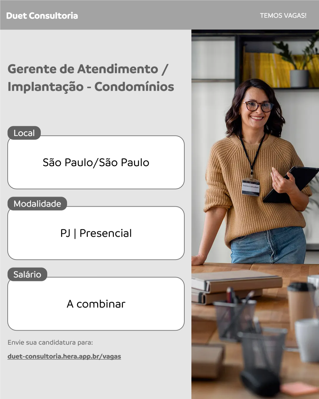 Realizar a implantação de condomínios novos, bem como atendimento consultivo e especializado aos condomínios de sua carteira, garantindo a resolução das demandas e satisfação dos clientes, bem como a gestão financeira, administrativa e operacional conforme contrato de administração.